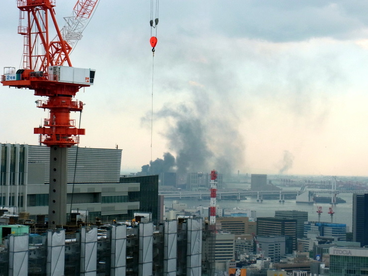 火事だ・・の声で見るとお台場、テレポートセンターあたりから