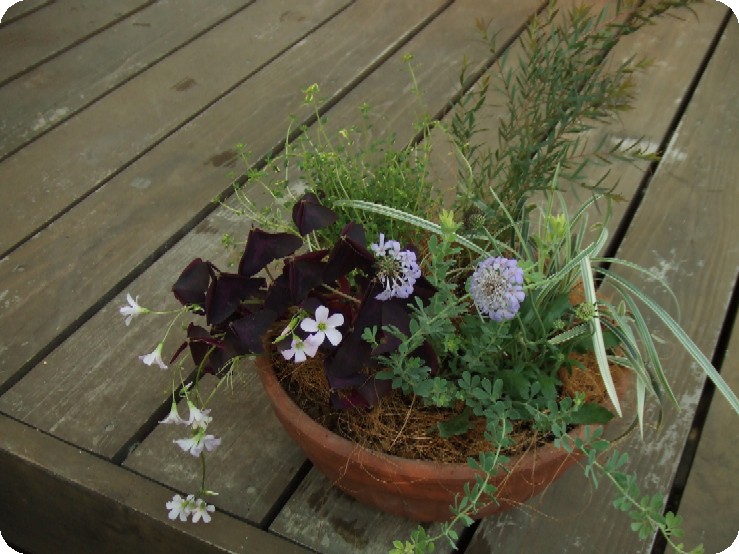 頼んで買っておいてもらった花材で寄せ植えを。。