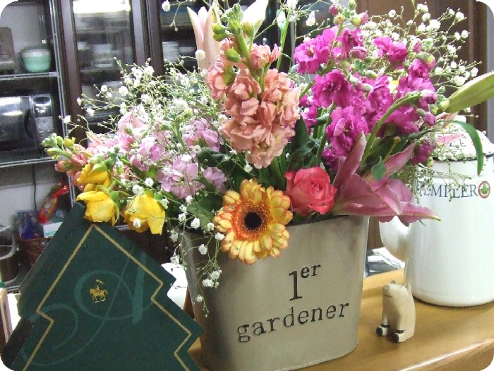頼んで買っておいてもらった花材で寄せ植えを。。