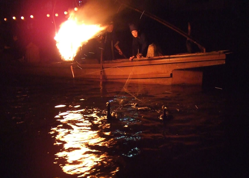 かがり火に照らし出される鵜匠の横顔、きれいだった。